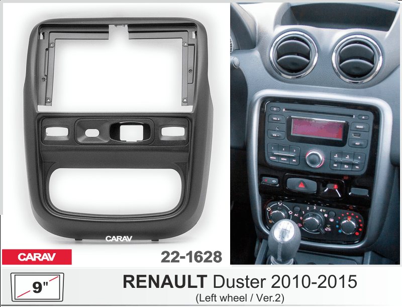 —CARAV 22-1628 (9 дюйм. монтажная рамка для а/м RENAULT Duster 2010-2015 (левый руль / ver.2 / черная)