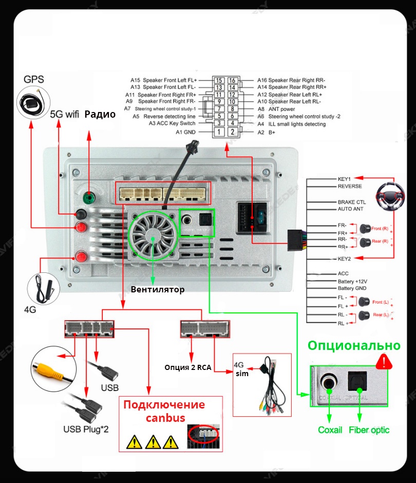 Возможность настраивать выключение звука при движении задним ходом. Поддержка AHD 1080p/CVBS |